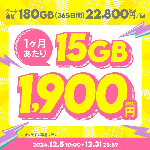 【期間限定】データ追加180GB(365日間) |