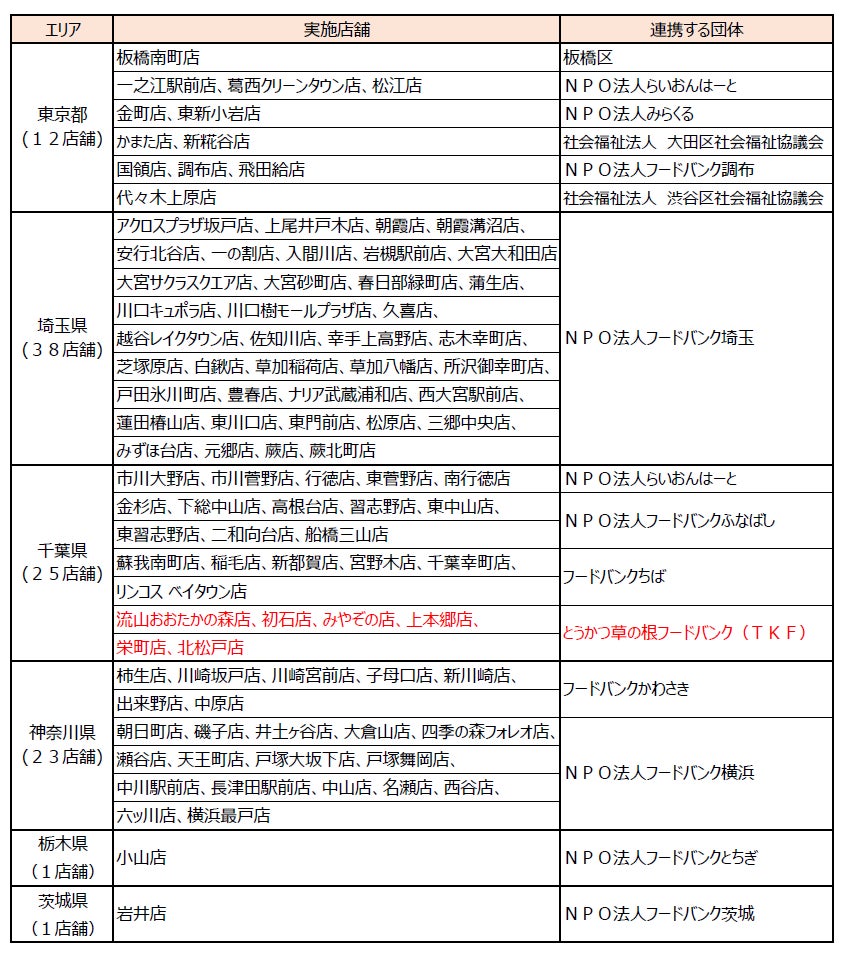 100店舗(2024年9月13日予定) ※赤字が新たに活動を開始する店舗