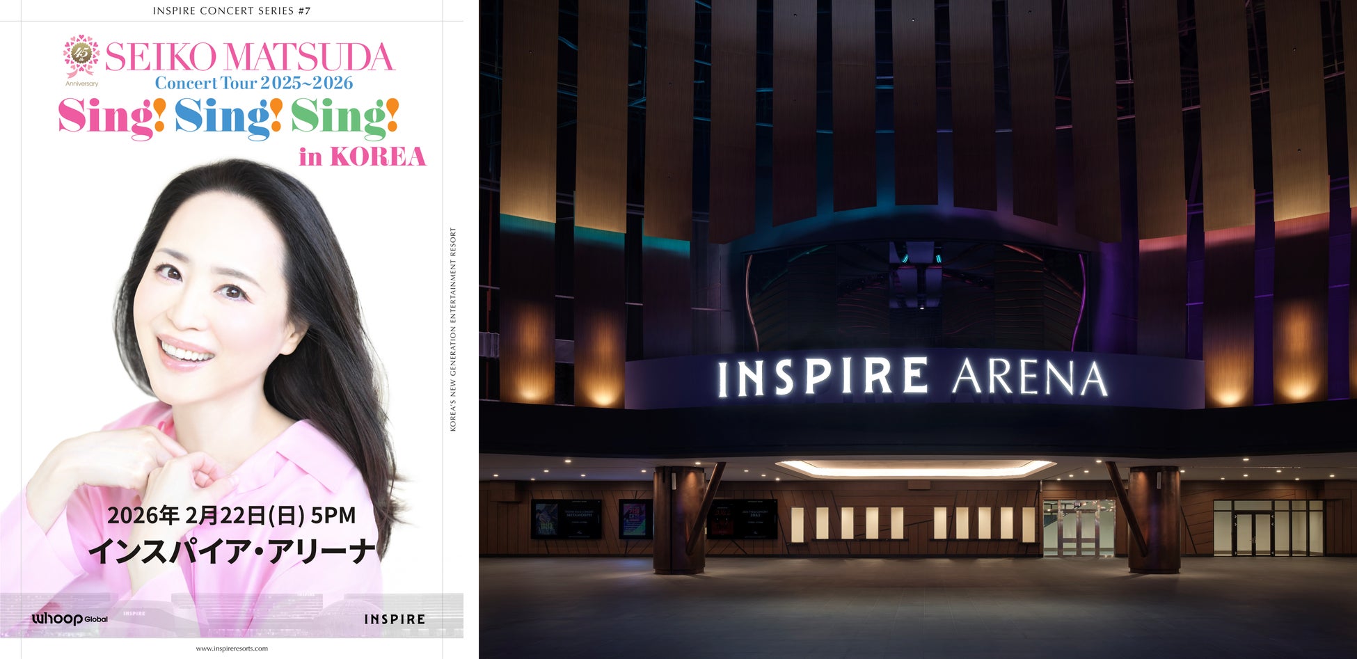 インスパイア・エンターテインメント・リゾート(本社:韓国仁川、以下「インスパイア」)は、インスパイア・アリーナにて、松田聖子のデビュー45周年を記念したコンサートツアーの韓国特別公演「INSPIRE Series #7: 45th Anniversary SEIKO MATSUDA CONCERT TOUR 2025~2026 “Sing! Sing! Sing!” in Korea」を、2026年2月22日(日)に開催することを発表しました。日本の音楽史に輝く永遠のアイドルが、キャリアにおいて初めて韓国のファンの前で披露するステージとなります。
