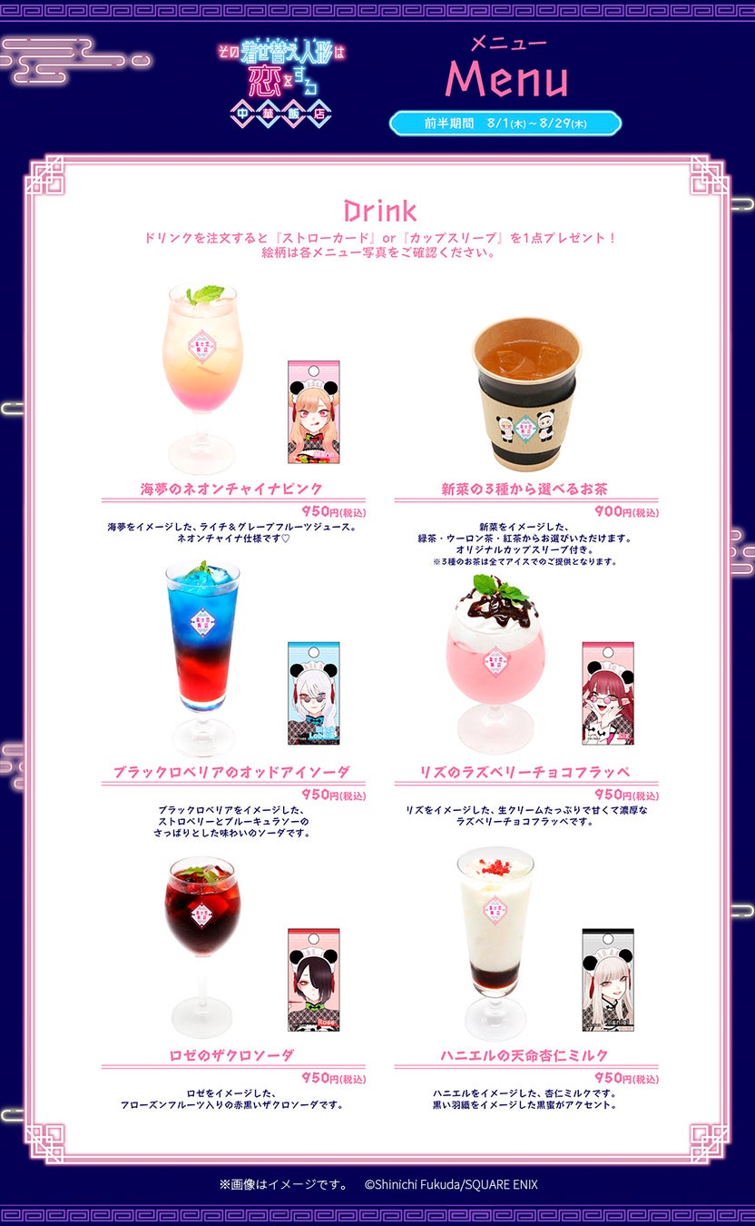 『着せ恋飯店』で前半期間(8月1日(木)~8月29日(木))に提供するメニューをご紹介いたします。