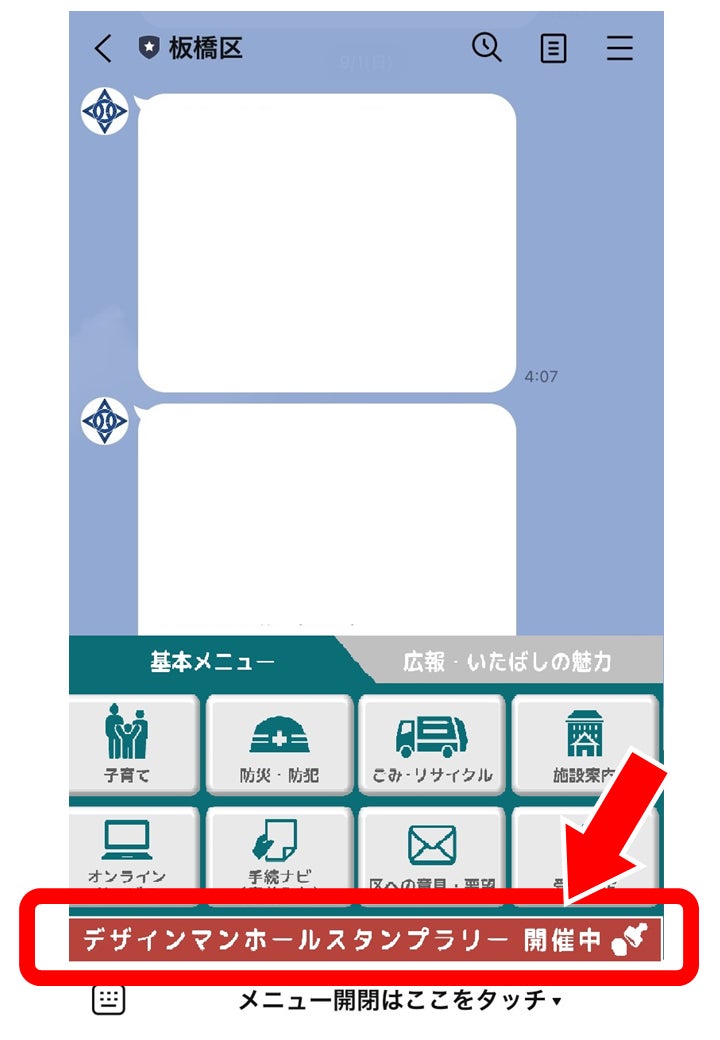 ① 板橋区公式LINEトーク画面にあるメニュー