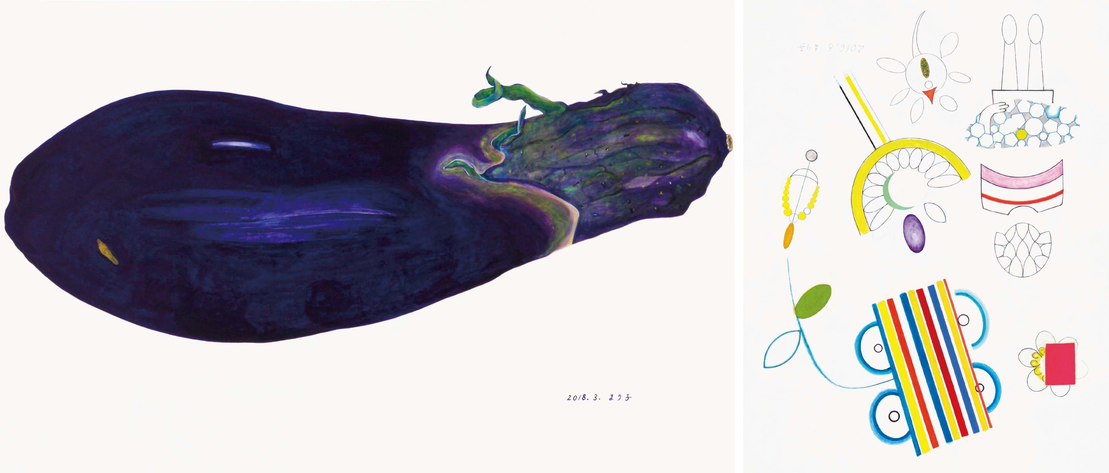 なぜ、いきなり巨大な果物、野菜、なす、白菜……急に幾何学!?