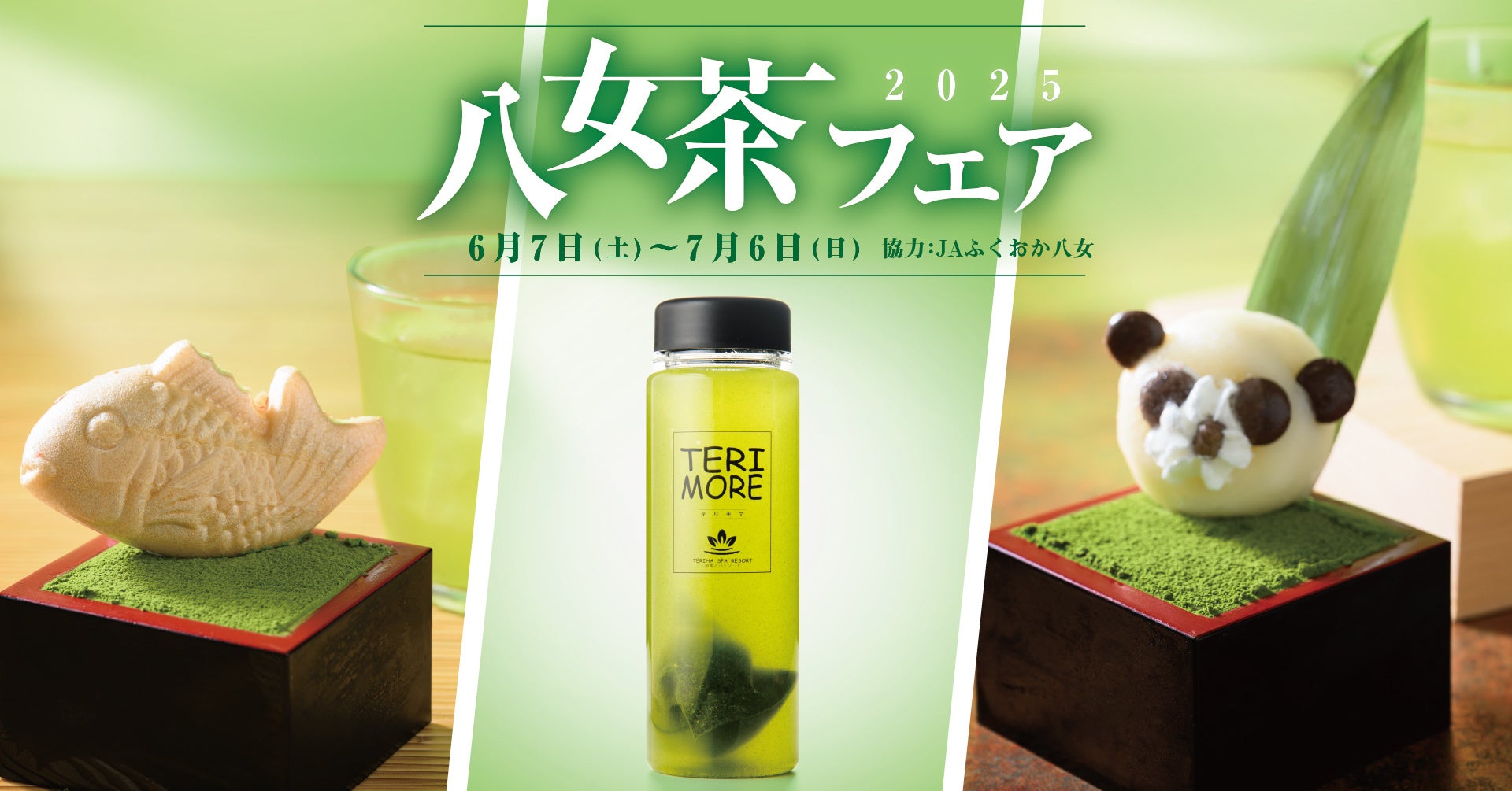 また、ご自宅でも八女茶をお楽しみいただける特設販売ブースや、八女茶の味わいを活かした期間限定のオリジナルメニューもご用意しております。そして、6月8日(日)にはJAふくおか八女による、美味しい八女茶の無料試飲会を実施いたします。旬ならではの上品な香りとみずみずしい味わいを、この機会にぜひご堪能ください。