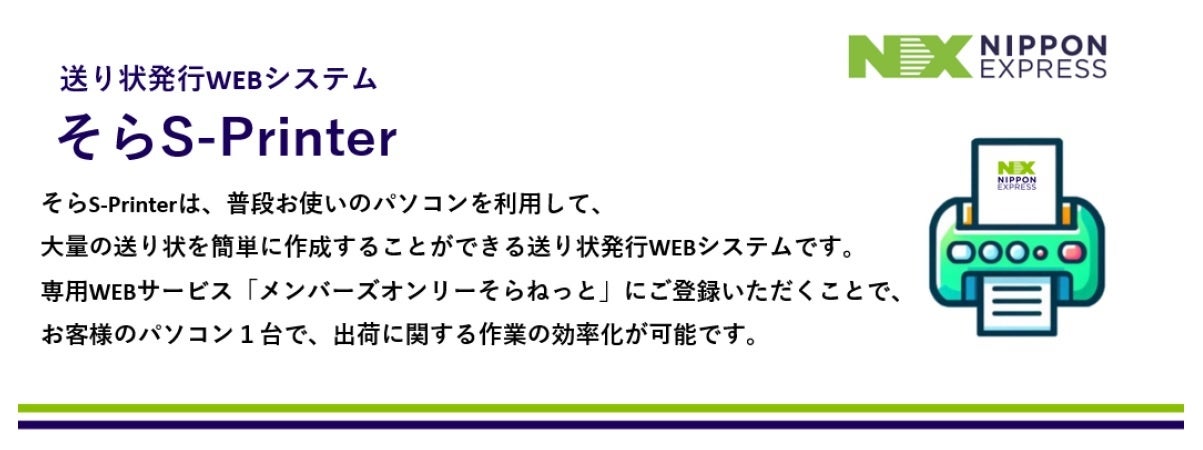 NIPPON EXPRESSホールディングス株式会社(社長:堀切智)のグループ会社、日本通運株式会社(社長:竹添進二郎)は、国内航空貨物Webサービス「そらねっと」において、Web上で手軽に送り状の大量発行が可能となる新機能「そらS-Printer」を5月30日(金)より提供開始しました。