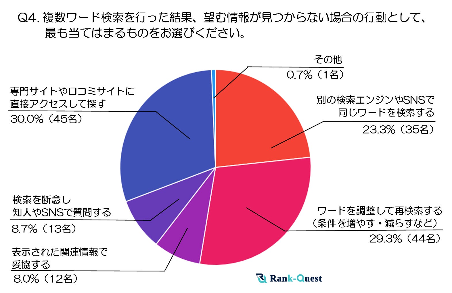 調査結果④:複数ワード検索を行った結果、望む情報が見つからない場合の行動として、最も当てはまるものをお選びください。