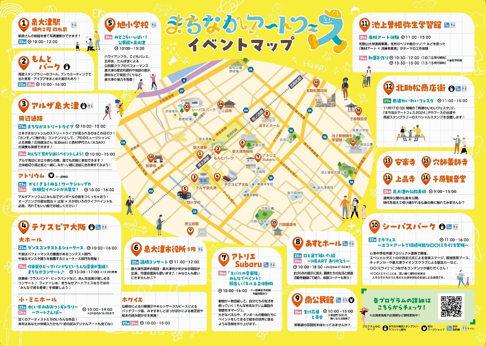 大阪府泉大津市(市長:南出賢一)は、2024年11月23日(土)から11月24日(日)にかけて、泉大津駅周辺のテクスピア大阪やアルザ泉大津ほか、14.33㎢のコンパクトな市域を活かし、泉大津市のいたるところで、絵画や音楽、ダンスなどのありとあらゆるアートに触れられるイベント、「まちなかアートフェス2024」を開催いたします。