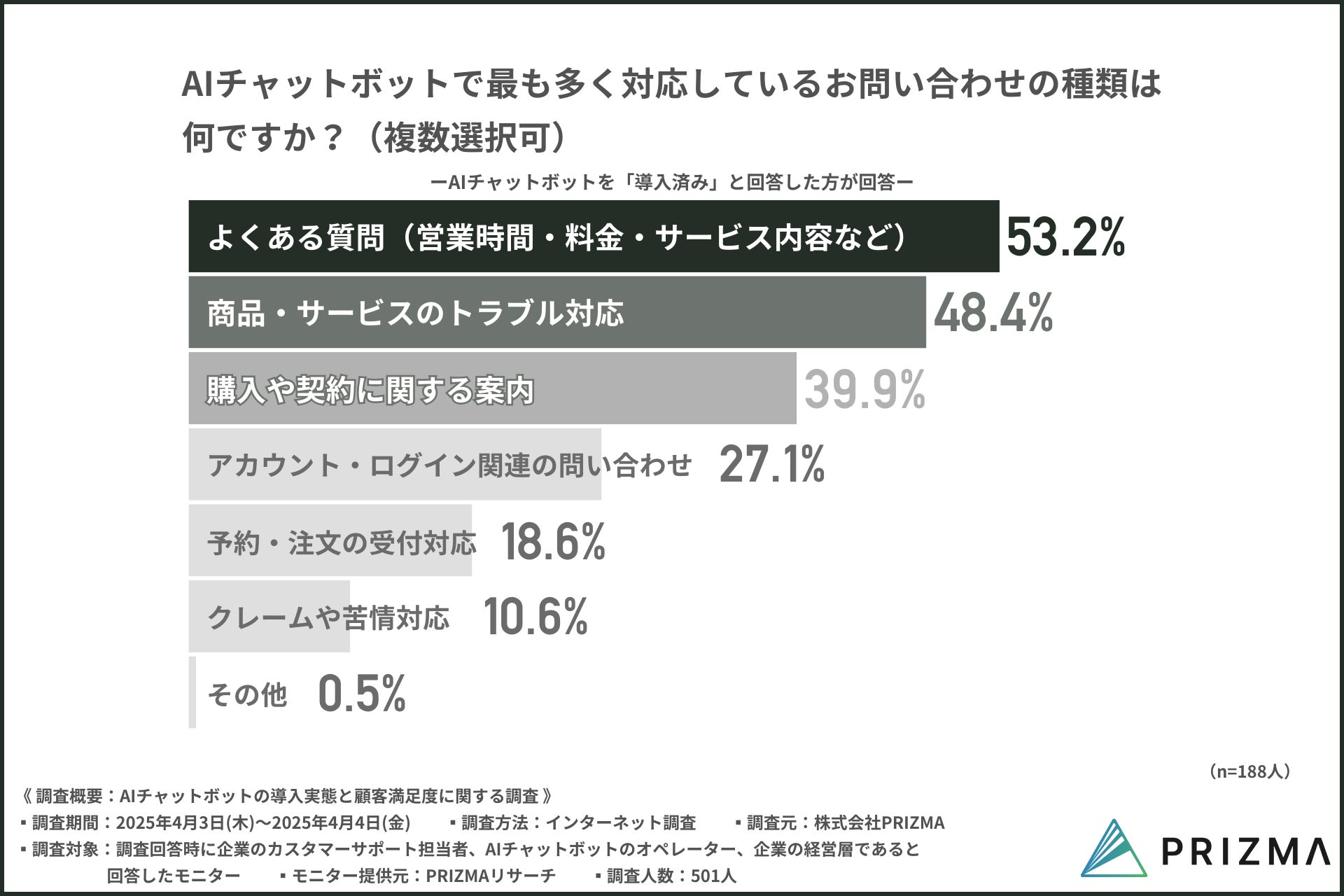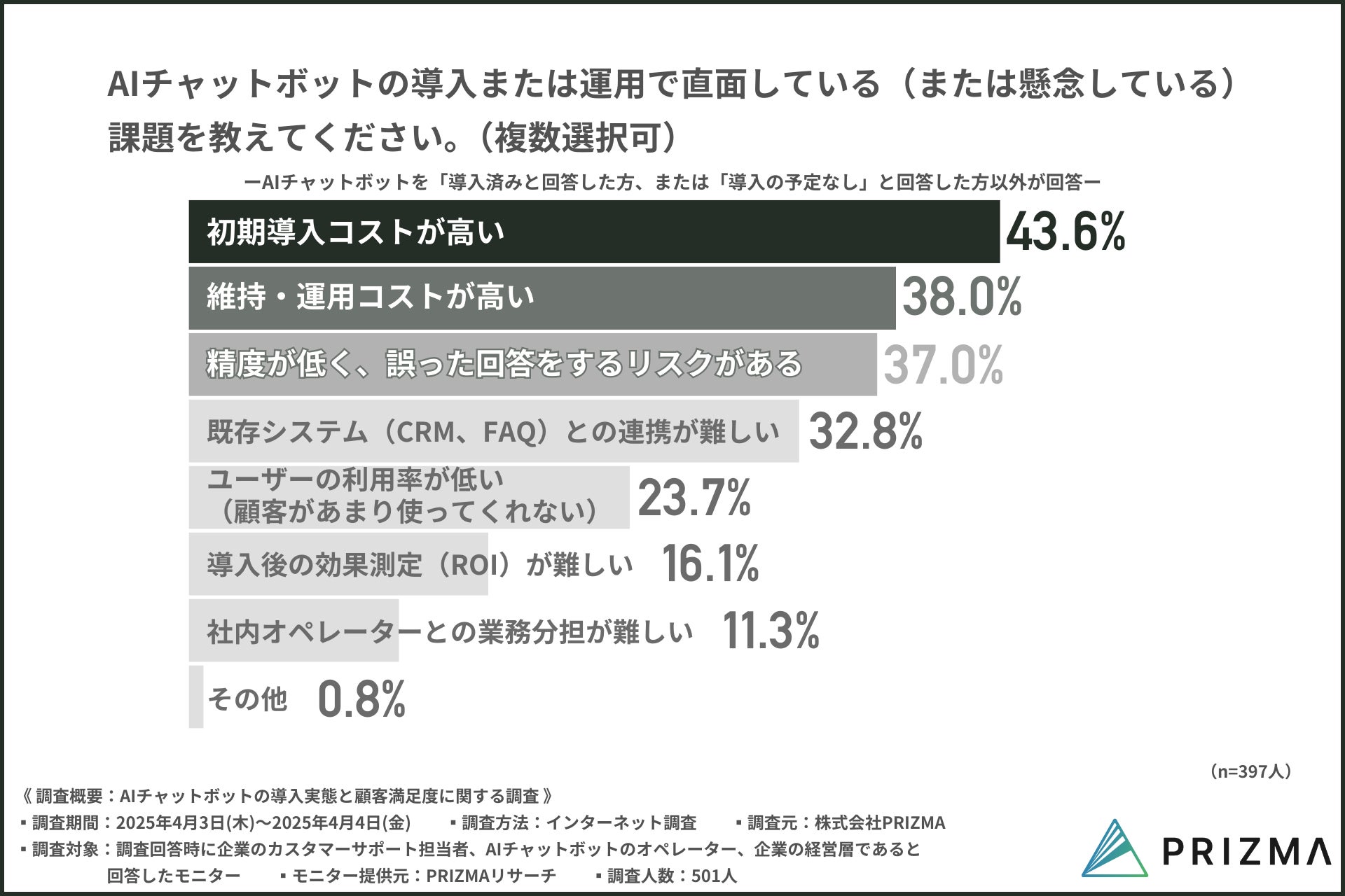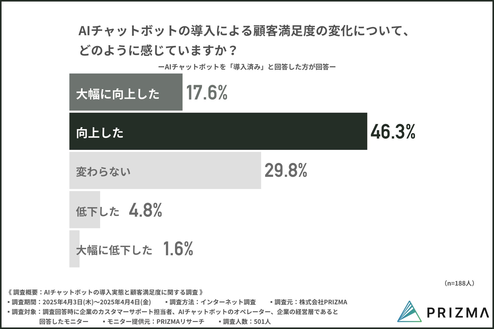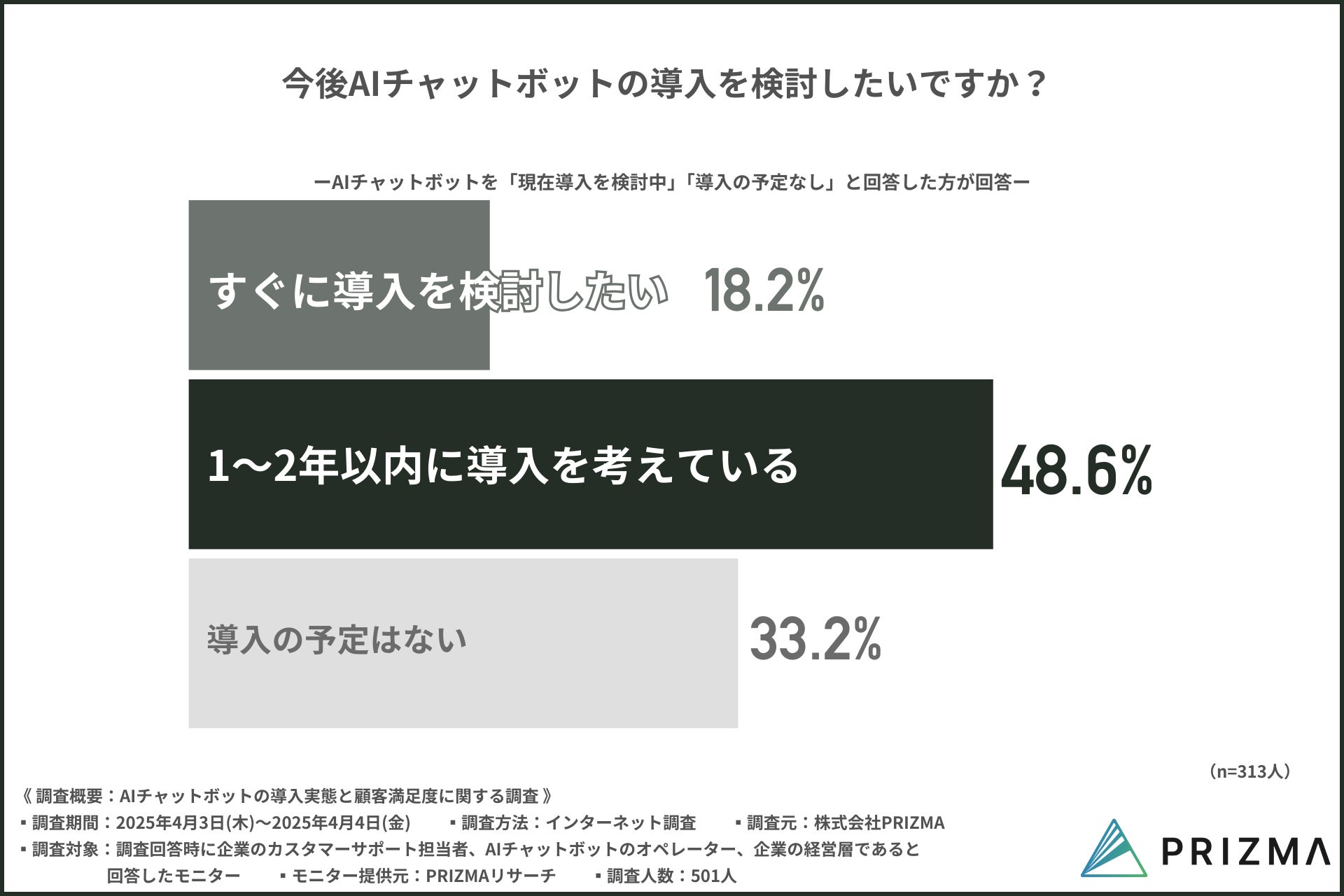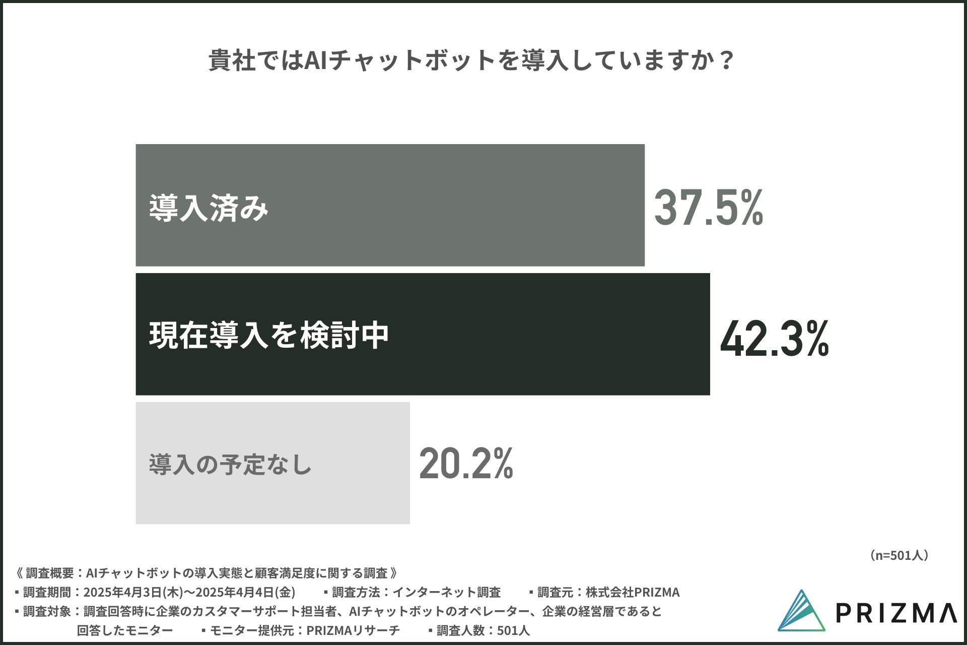そこで今回、株式会社PRIZMA(https://www.prizma-link.com/press)は、企業のカスタマーサポート担当者、AIチャットボットのオペレーターを対象に「AIチャットボットの導入実態と顧客満足度に関する調査」を実施しました。