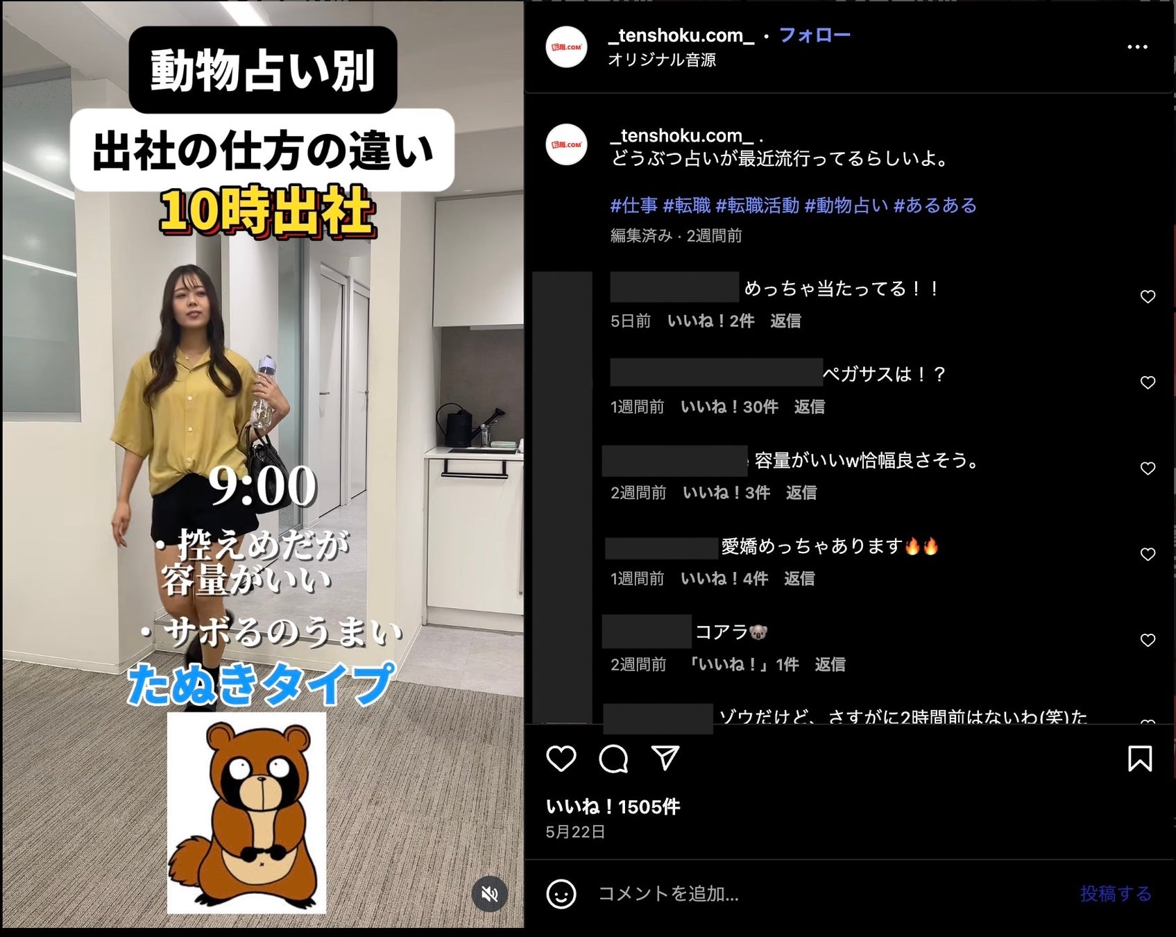 「MBTI」「動物占い」などを活用したコンテンツがInstagram・TikTokで急拡大(285万リーチ獲得)https://www.instagram.com/reel/DJ9AToVOsPd/?utm_source=ig_web_copy_link&igsh=MzRlODBiNWFlZA==