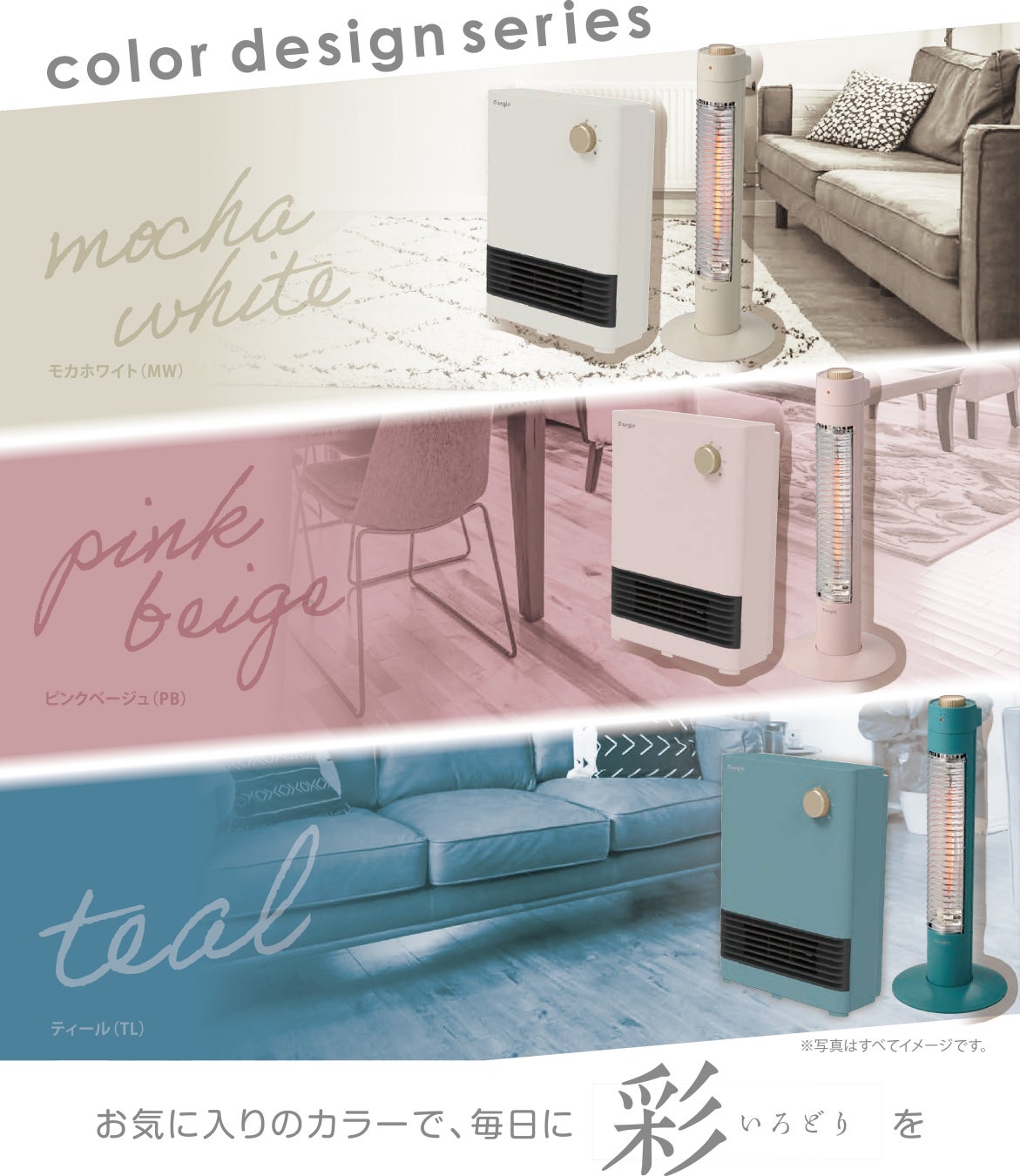 e angle 『カラーデザインシリーズ』に、暖房家電が新たにラインナップ!