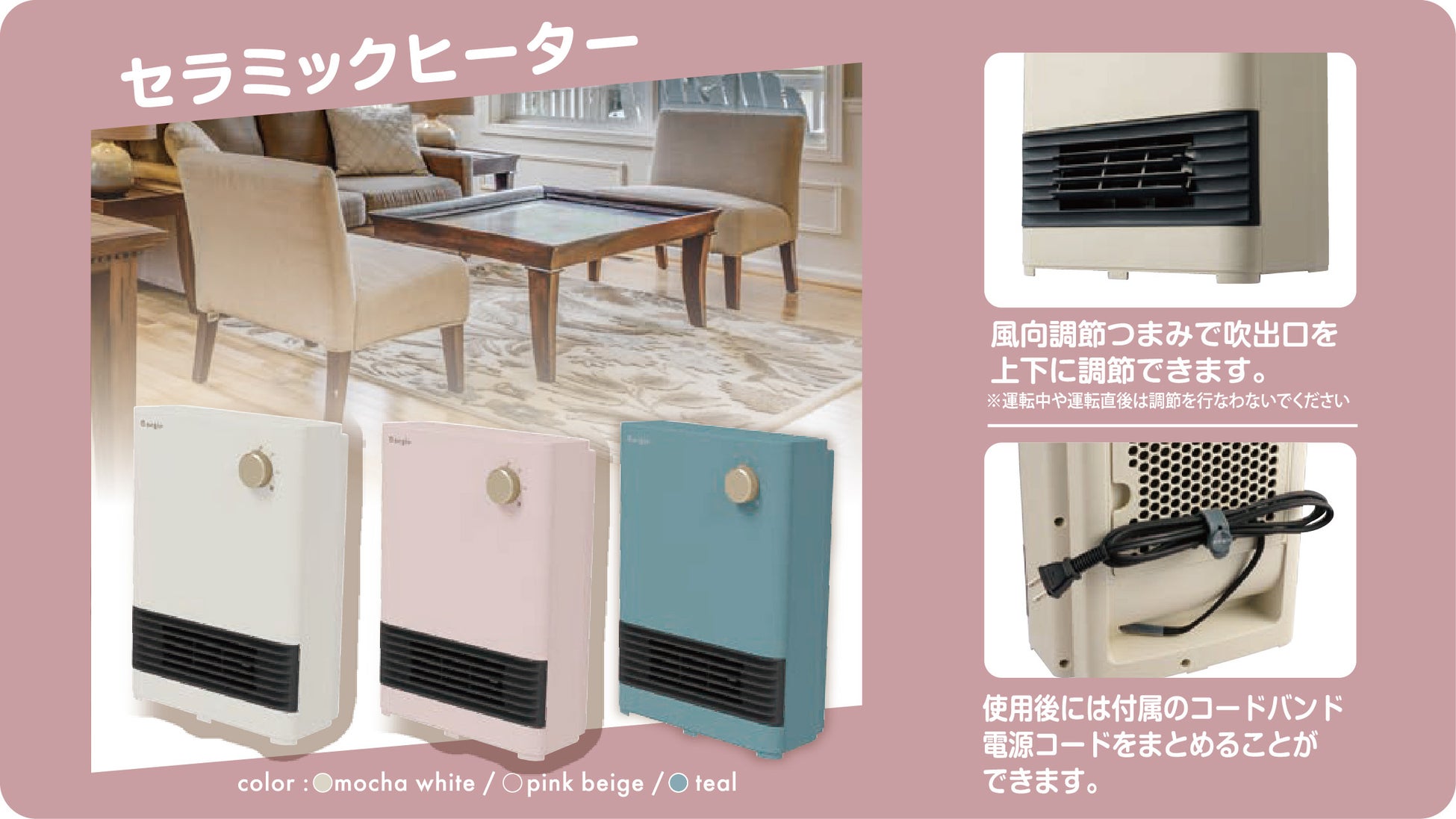 ~暖房器具もおしゃれに!お部屋を彩る3色のカラーバリエーション~