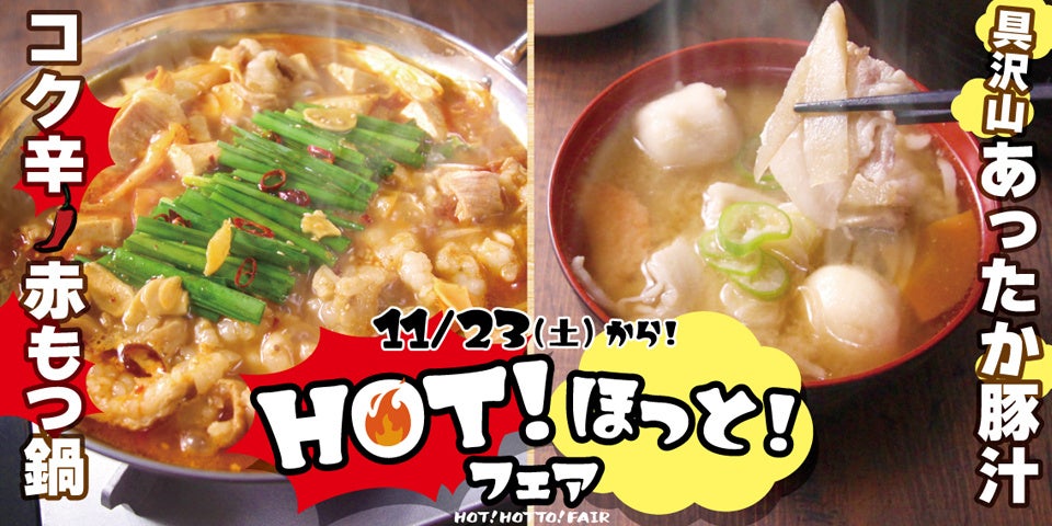 【すたみな太郎】11/23(土)~HOT!ほっと!フェア~HOTな「コク辛赤もつ鍋」、ほっとする「具沢山あったか豚汁」他~