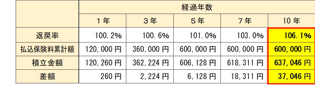 b.解約返戻金の推移 *月払い保険料1万円の場合