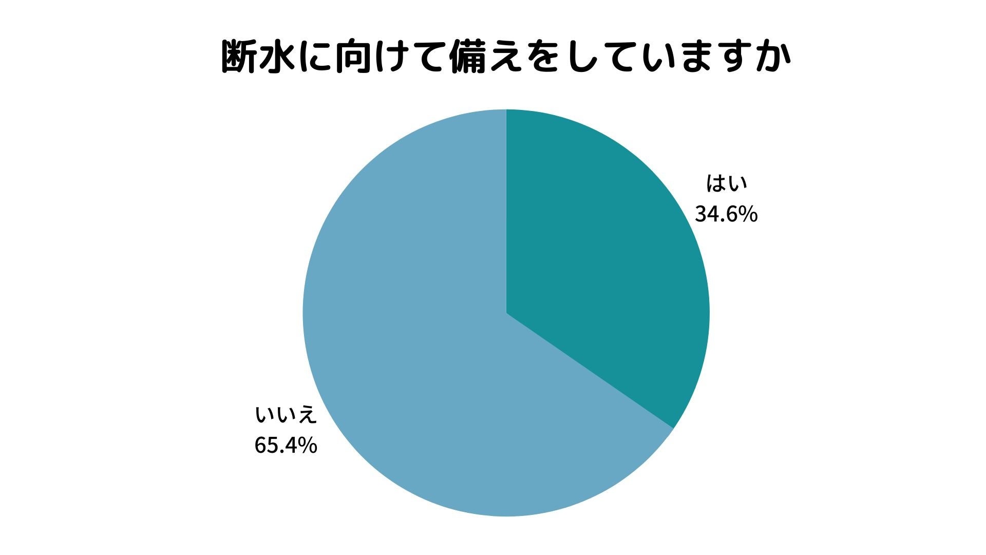 続いて断水に向けて備えをしている家庭について調査をしたところ、34.6%の家庭が断水に向けて何かしらの備えをしていることが分かりました。