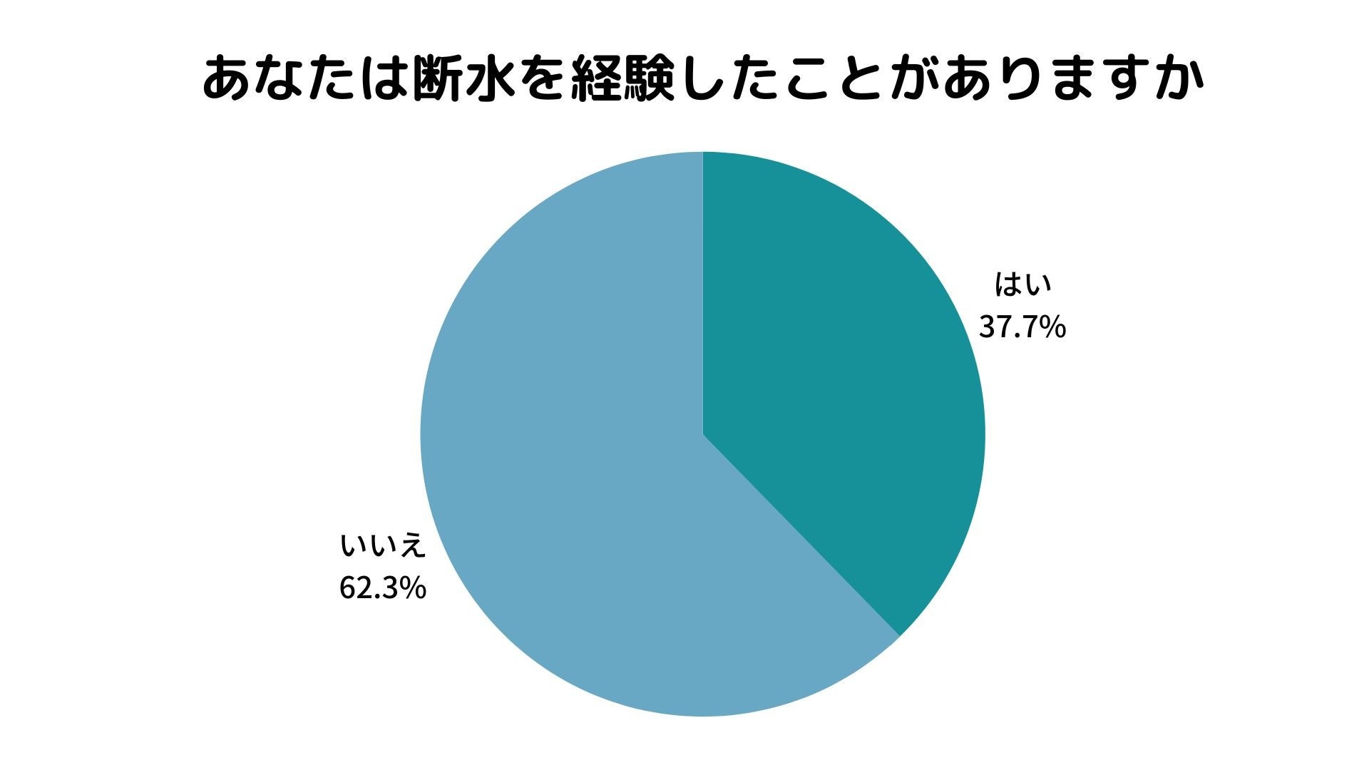 全国の20~50代の既婚女性2401名に調査を取ったところ、37.7%もの人が、これまでに断水を経験していることがわかりました。