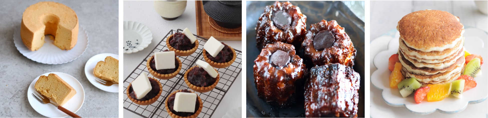 もちもちとした食感のイメージが強い米粉ですが、ふわふわやしっとり、ほろほろなど様々な食感が楽しめます。特設ページでは、台湾カステラやシフォンケーキ、タルトやカヌレなど、米粉の特徴ごとにレシピを紹介しています。