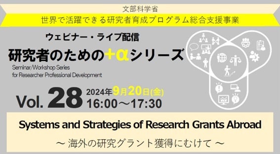 2024年9月11日、東京発:科学コミュニケーションおよびテクノロジー分野で世界的に活動するカクタス・コミュニケーションズ( Cactus Communications、本社:インド、https://cactusglobal.com/jp )は、文部科学省による委託事業「世界で活躍できる研究者育成プログラム総合支援事業」の一環として、若手研究者や研究支援者を対象とした「研究者のための+αシリーズ」において、海外の研究助成金に関するウェビナーを開催することが決定しました。