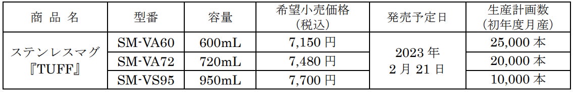 ステンレスマグ(SM-VA60・72/SM-VS95)ニュースリリース