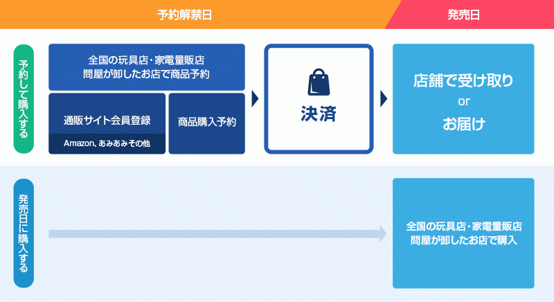 一般店頭発売商品は、全国の玩具店、家電量販店、通販サイトなどで購入できる商品です。