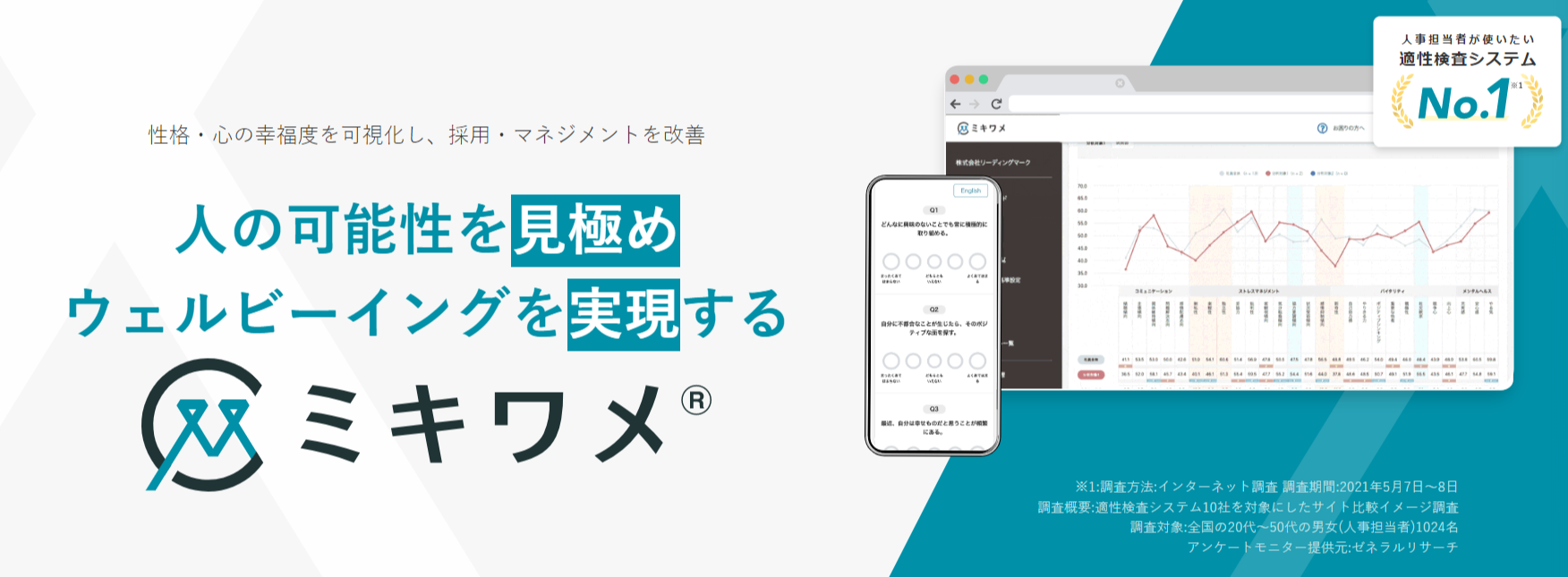 -社員のメンタル状態を可視化し、性格をもとにアドバイスをすることでウェルビーイングを実現「ミキワメ ウェルビーイング」https://mikiwame.com/well-being.html?data=pr
