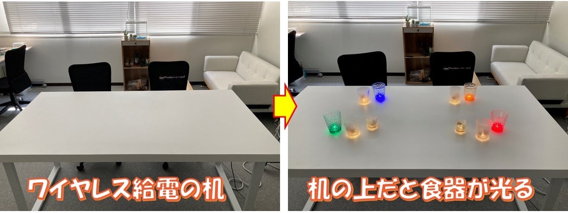 この度、ワイヤレス給電を内蔵したテーブルの試作開発を実施し、机の上に設置した様々なものへ電力供給デモを実施、公開しました。