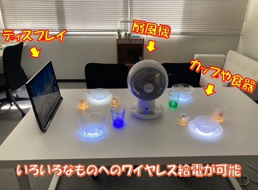株式会社ビー・アンド・プラス(本社:埼玉県)は、ワイヤレス給電を内蔵したテーブルを開発。机の上に置くだけで電気を供給し、食器やライトを光らせたり、スピーカーや扇風機などを動かすことが可能です。ワイヤレス給電テーブルを始めとした家具へのワイヤレス給電を通じ、コードレスの社会を実現させワイヤレス給電の更なる普及に向けた取り組みを強化していきます。