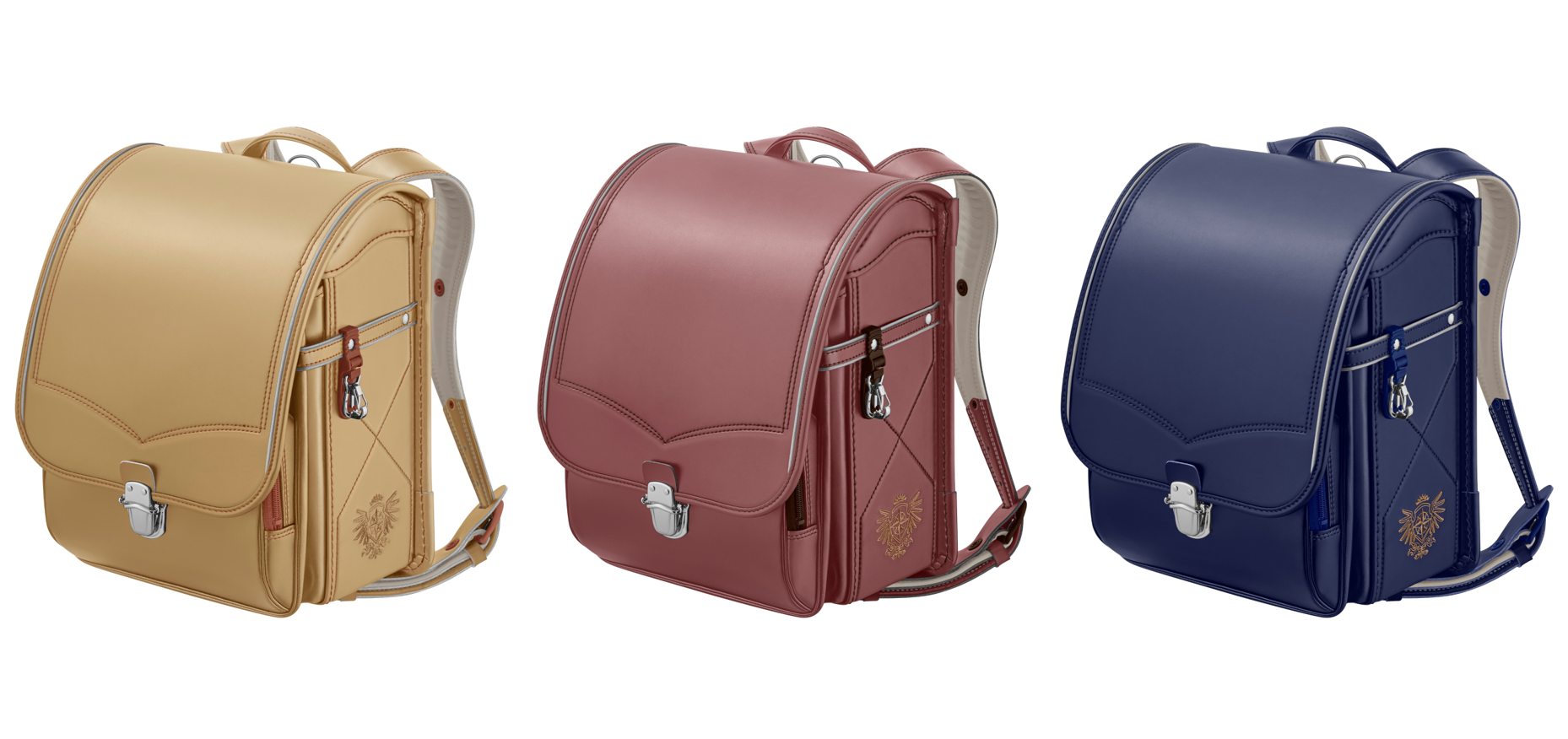今年は昨年までのシンプルデザインに加え、学習院型・半カブセ型ともにランドセルの刺しゅう入りの製品を新たに10種類追加し、全16種類の製品をご用意いたしました。