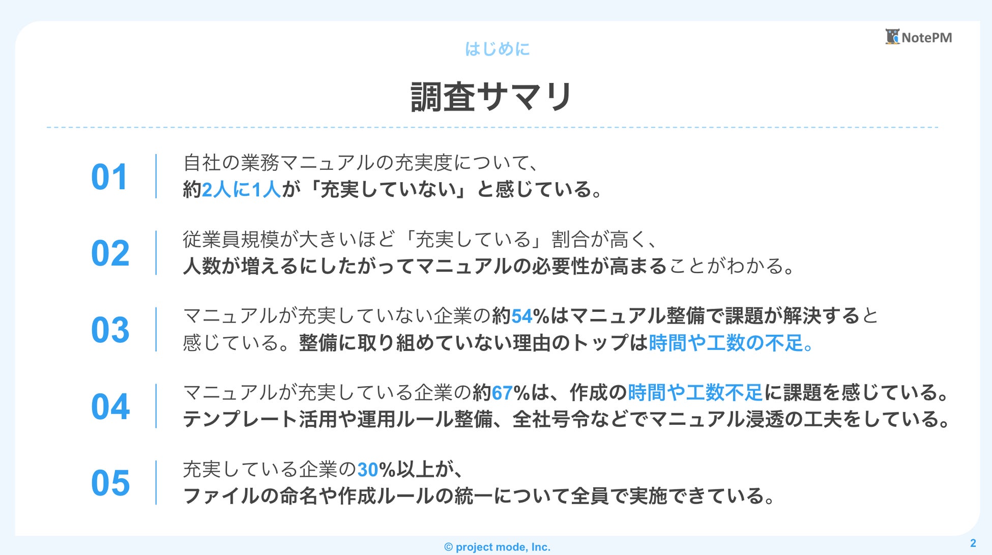 【業務マニュアル活用の実態調査】ナレッジ管理SaaS「NotePM」を提供するプロジェクト・モードが調査レポートを公開