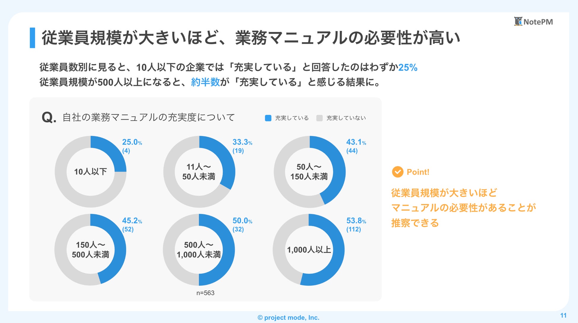 従業員規模が大きい企業ほどマニュアルの必要性は高まる