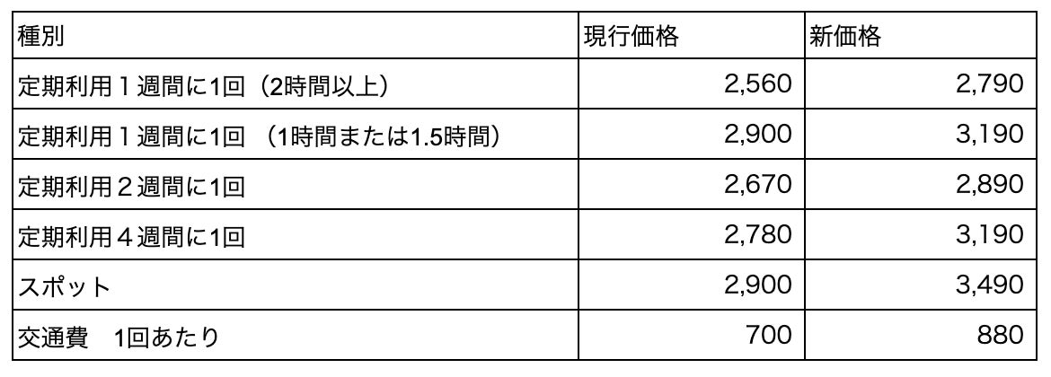 2023年10月よりインボイス制度が導入される予定であり、それに伴いキャストの維持にかかるコストが増加する見込みとなっております。また、昨今の諸物価の上昇や交通運賃の値上げが相次ぐ中、サービス運用コストも例外なく増加していることから、品質及び家事代行キャストの報酬維持と健全な事業継続のため価格改定を行います。