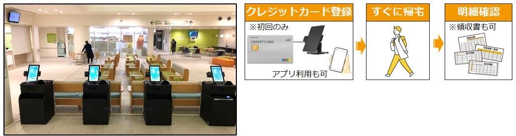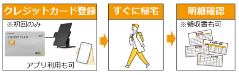 患者様は事前に「クレジットカード」を登録しておけば、会計を待たずに帰宅することができる便利なシステムです。患者様の待ち時間短縮や院内の混雑緩和のほか、会計業務の削減に効果があります。