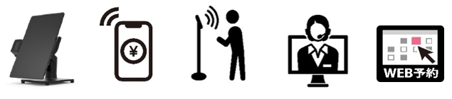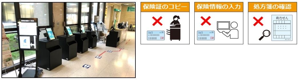 「保険証確認システム」、「診療費後払いシステム」(キャッシュレス)、「顔認証による手ぶら受付システム」、「院内コールセンター」(非対面受付)、「WEB予約システム」など