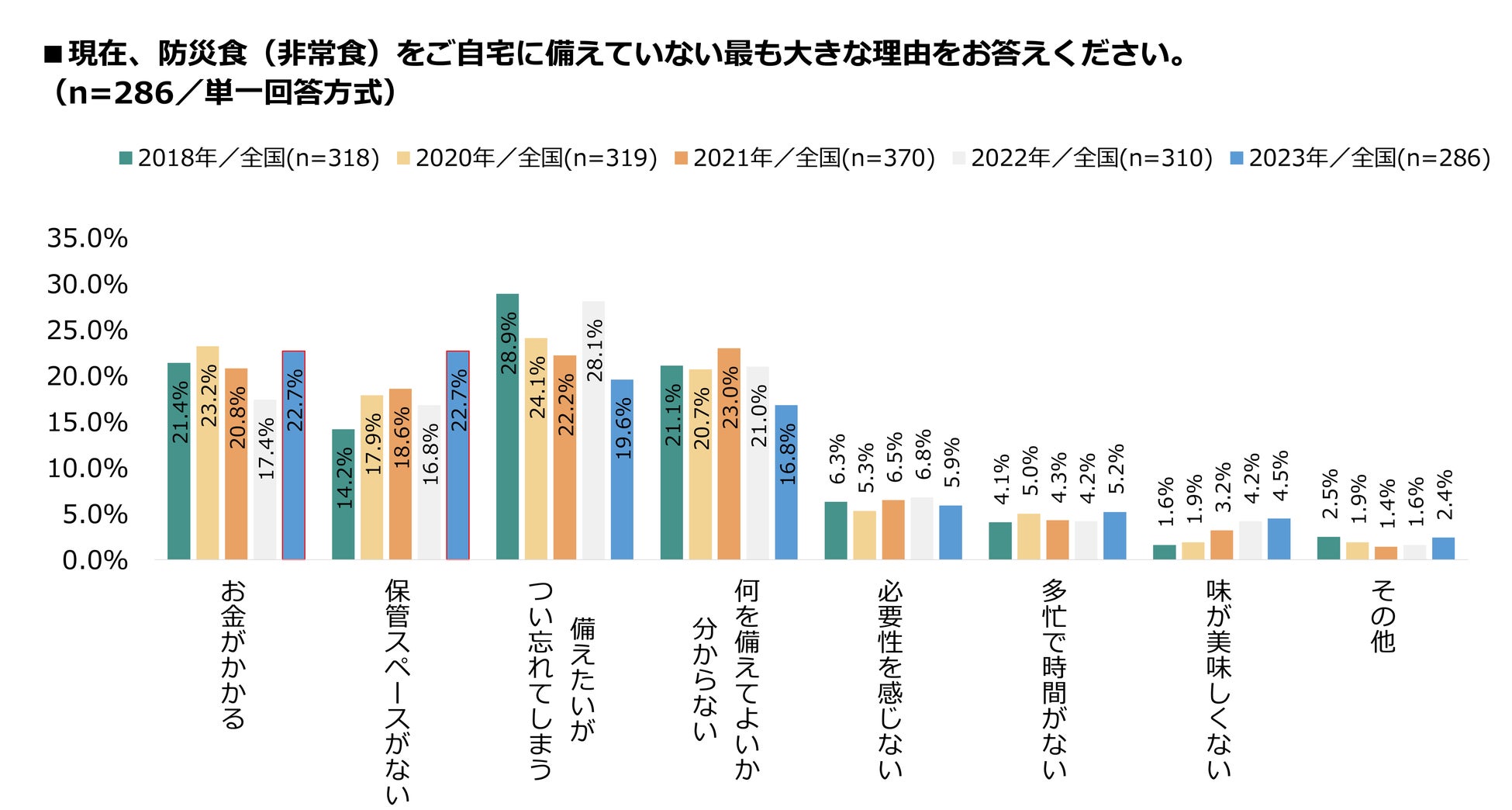 昨年首位の「備えたいがつい忘れてしまう(19.6%)」と入れ替わり初の首位に