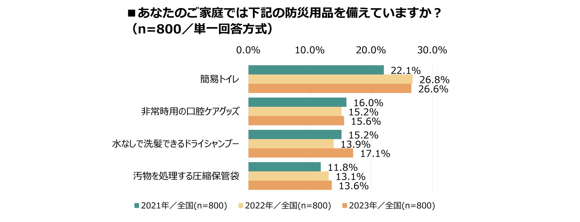 ■つい忘れがちな「簡易トイレ」の備蓄率は26.6%にとどまる