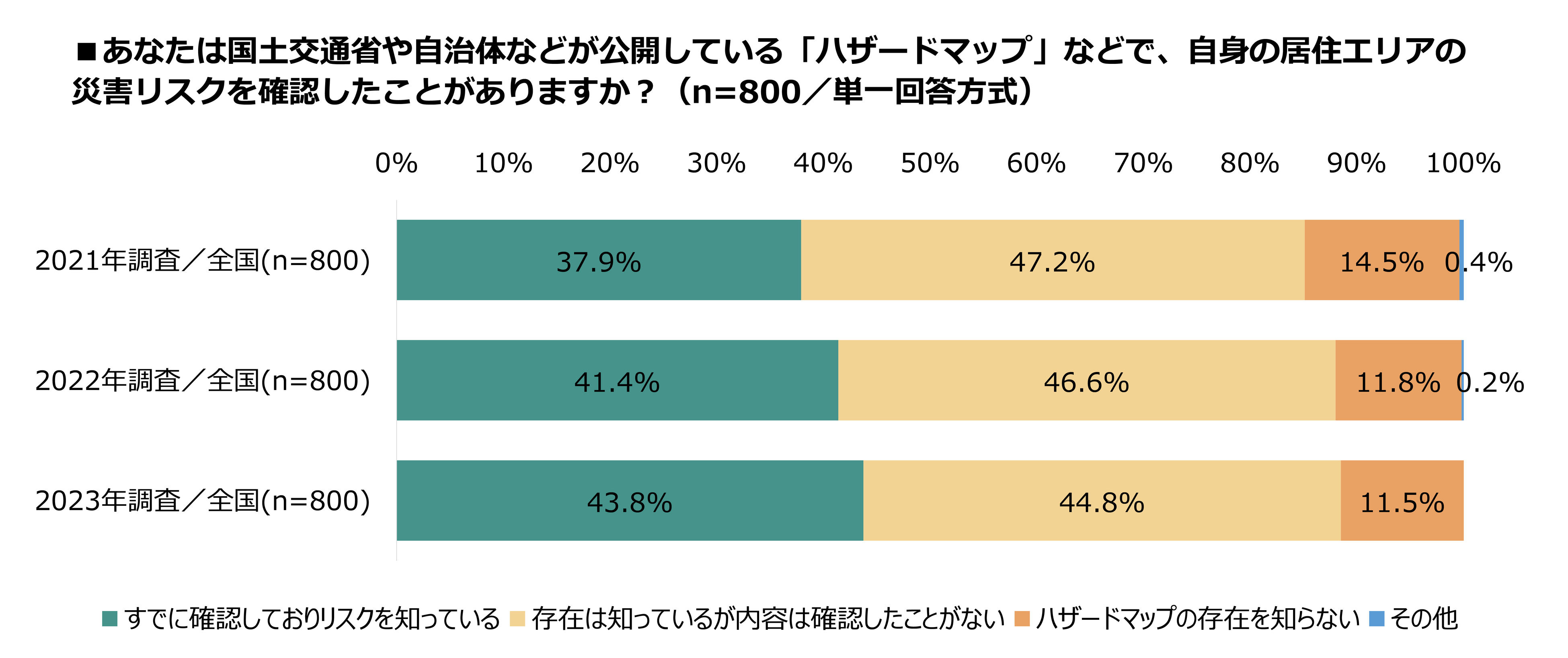 - ハザードマップなどで居住エリアの災害リスクを把握 43.8%