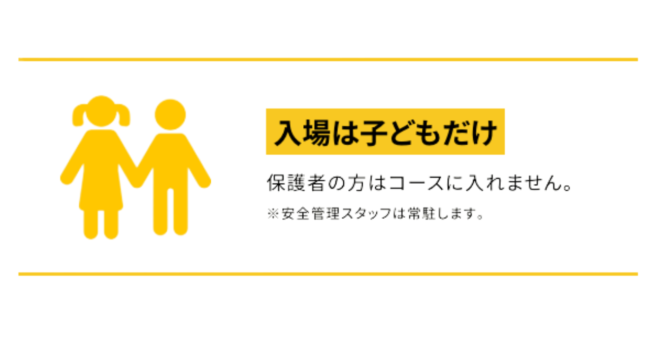 試乗コース内に足を踏み入れることができるのは、子どもたちとサポートスタッフだけ。保護者の方はコース外から子どもたちを見守ります。