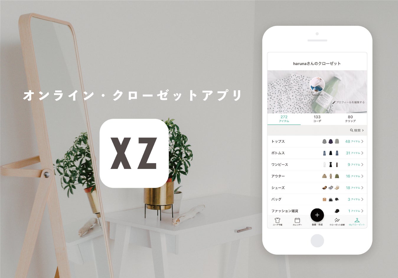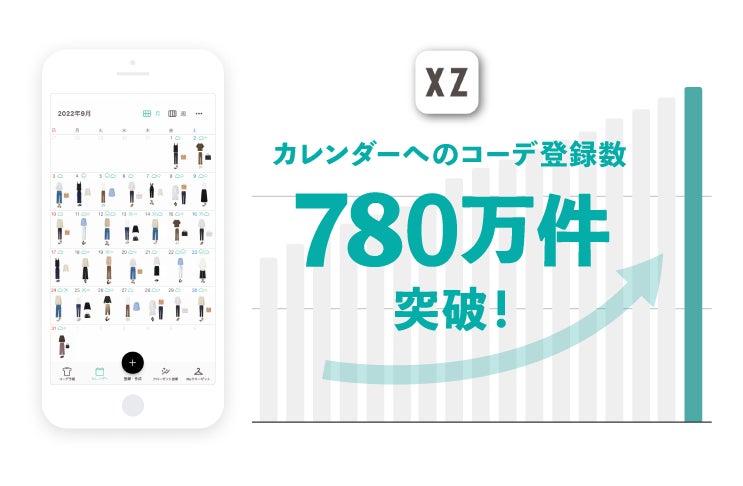 「XZ(クローゼット)」は、持っている服をアプリに登録することで、クローゼットの中身をデジタル化できるオンライン・クローゼットアプリです。AIスタイリストによる持っている服を使ったコーディネート提案機能や、着用したコーディネートを記録できるカレンダー機能を搭載し、毎日のコーディネートを考える際にご活用いただいております。