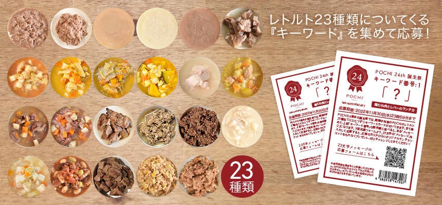 プレミアムドッグフード専門店・通販「ポチの幸せ(POCHI)」(運営:マーケティングパートナー株式会社、本社所在地:東京都新宿区、代表取締役社長:権田真司、Tel:03-6772-8194)は、1998年に「POCHI」が誕生してから24周年を記念し、日頃の感謝の気持ちを込めた大型キャンペーン「24周年誕生祭」を11月8日(火)から開始しました。