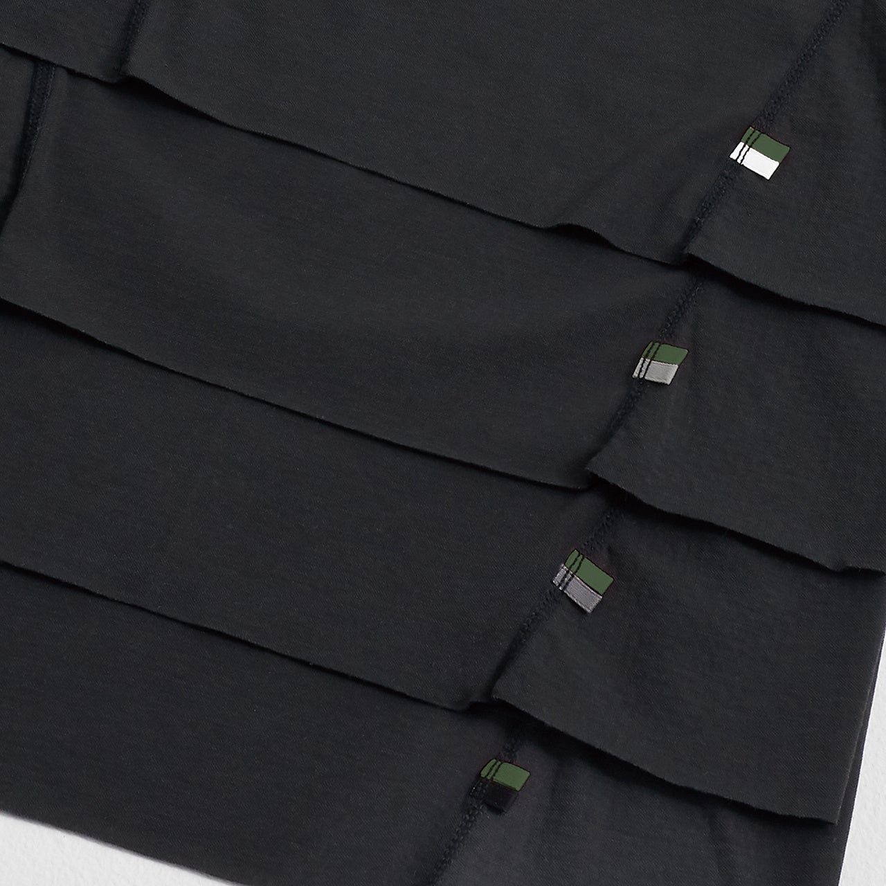 ・裾を切りっぱなしにし、肌とインナーの段差が減ることで、洋服にひびきにくい仕様