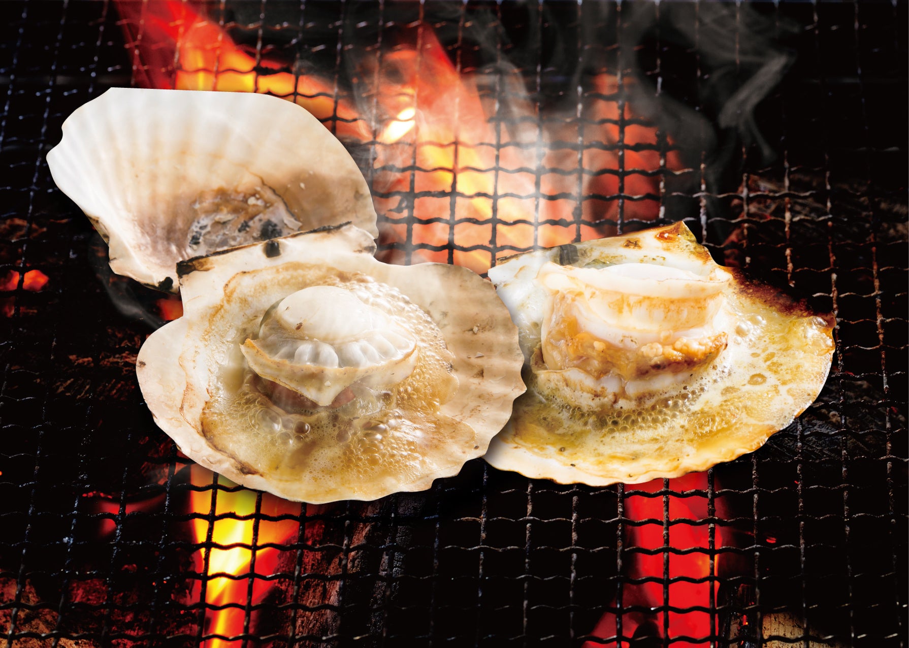 目の前で焼ける楽しさ!名物磯丸焼き!