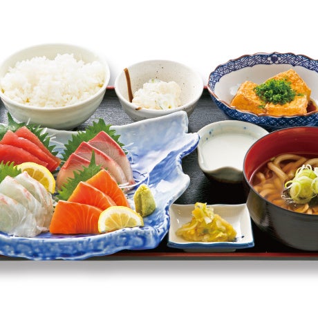 【お刺身盛り合わせ定食(鯛・マグロ・ブリ・サーモン)】1,099円(税込1,209円)