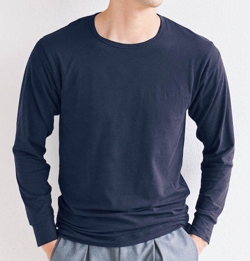 綿混あったかインナー・クルーネック長袖メンズ(ナイトネイビー)