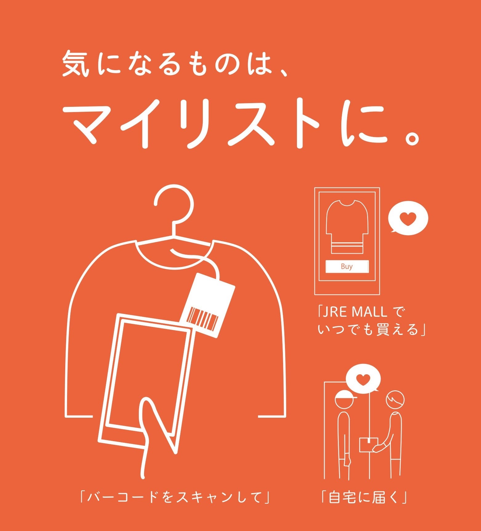 店頭で見て・触って・試した商品の情報を、スマートフォン上での自分だけの「マイリスト」に保存することによって、店頭を離れた後でも商品を吟味し、好きな時にJRE MALLでご購入いただけるウェブアプリケーションです。駅やエキナカという生活動線上の多くの人が行き交うオフラインの場と、JRE MALLとをシームレスにつなぐ連携システムとして、お客様の利便性向上を目的に開発されました。また、アプリケーションを介してお客様のニーズを把握することで、よりお客様に寄り添ったサービスの提供と快適なお買い物体験を実現します。
