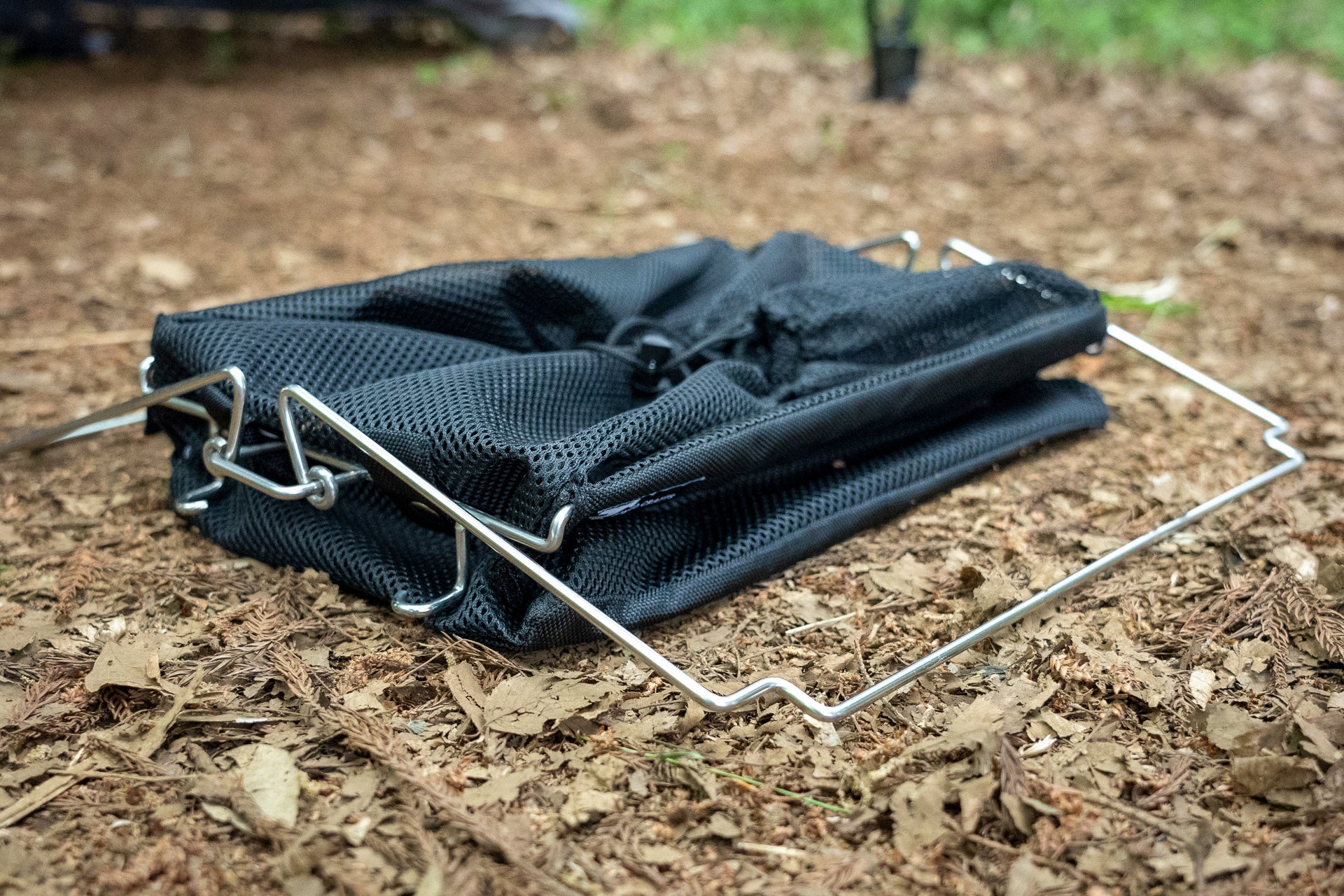 より美しい佇まいのサイトを作るために、仕舞うとき、置くとき、運ぶときの収まりをデザイン。伸縮性・通気性に優れ、水洗いできるメッシュ素材を採用しています。