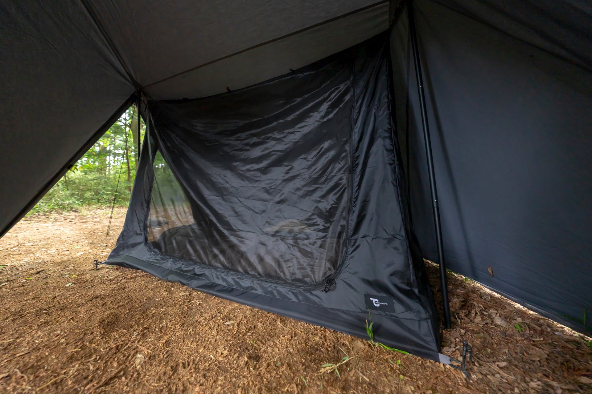 4方向にメッシュパネルを配置し、夏も冬も快適に過ごせるダイヤフォートTC専用のインナーテントが新登場。