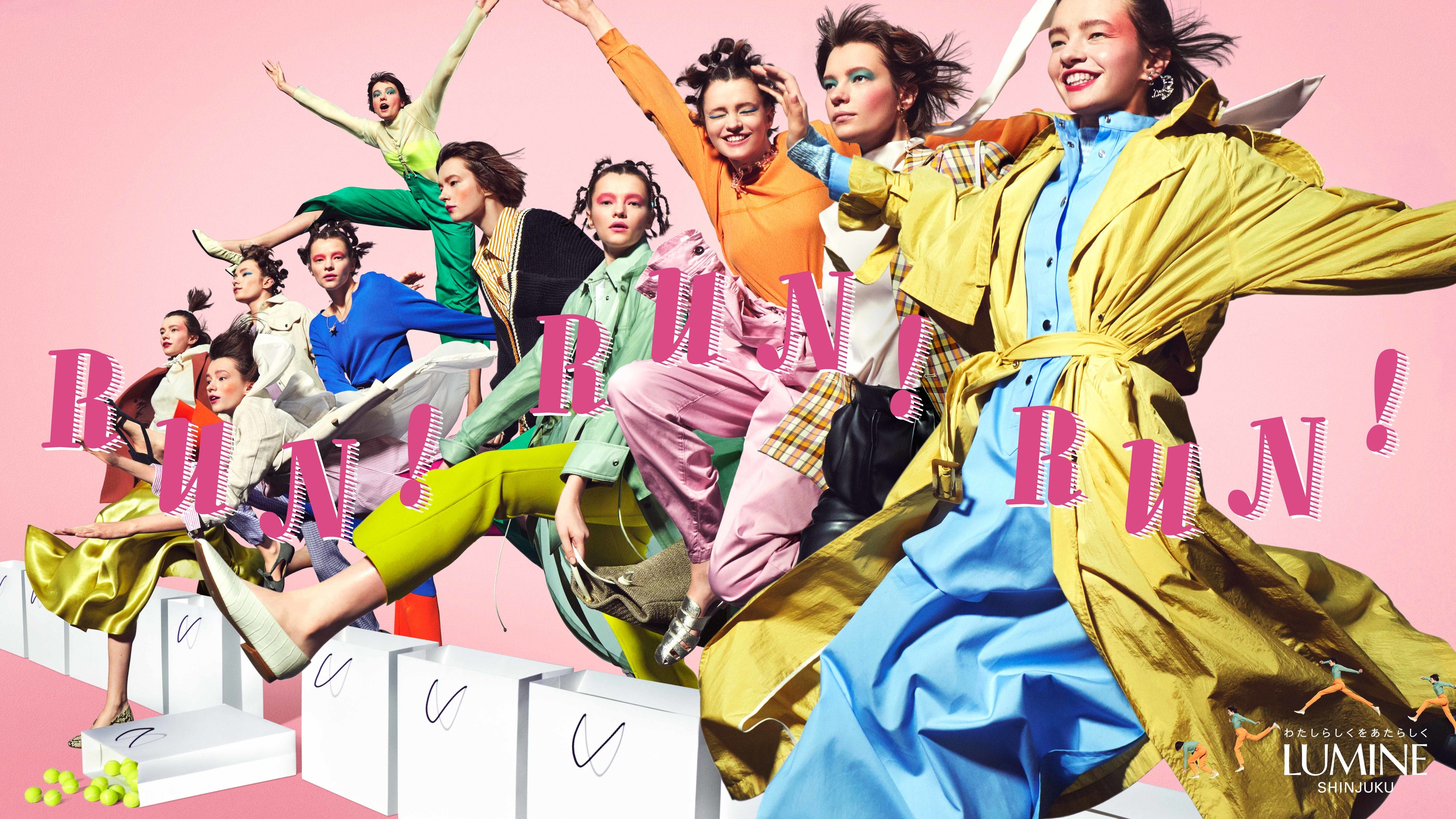 “LUMINE”の当時のシーズンテーマ「走る」を連想させた広告ビジュアル。カラフルな色使いや躍動感のあるフォントデザインにも注目。