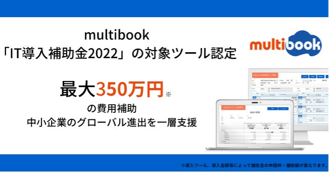 海外拠点の業務標準化・人材不足への対応・連結決算早期化・各拠点の業績の見える化などの経営管理課題を解決する、グローバル企業向けクラウド型会計・ERP※サービス「multibook(マルチブック)」を提供する株式会社マルチブック(東京都品川区、代表取締役CEO:渡部 学、以下「当社」)は、「multibook」が、経済産業省が推進する「サービス等生産性向上IT導入支援事業(通称:IT導入補助金2022)」の対象ツールとして認定されたことをお知らせします。これにより、「multibook」を導入する中小企業・小規模事業者等は、導入費用の一部について補助を申請することが可能になります。