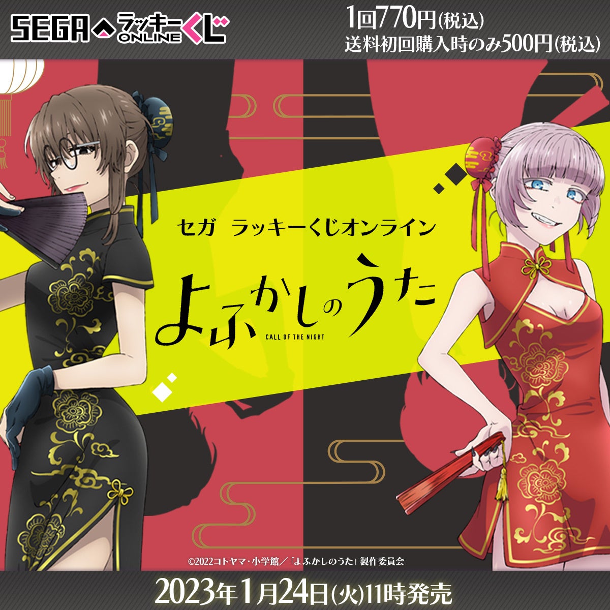 チャイナドレス姿の「七草ナズナ」や「鶯餡子」のアイテムなどが当たる!セガ ラッキーくじオンライン「よふかしのうた」、発売決定