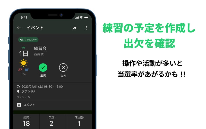 TeamHubはサッカーチームのスケジュール共有や用具管理が楽になり、スコア記録も自動で行われて選手のモチベーションアップにもつながるアプリです。ぜひこのキャンペーンを機にご導入ください!