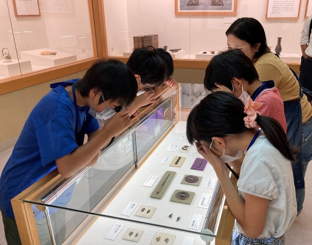 宗桂会は毎年、加賀象嵌の資料保存として、歴史的価値が高い名品をはじめ若手作家の作品を積極的に収集。所蔵品を宗桂会館で常設・企画展示して無料で一般公開するほか、他館へ貸出を行っています。また、加賀象嵌をはじめとする金工の魅力を発信する会報誌「Decoration」の発行や加賀象嵌作品の写真を大胆に用いたカレンダーの制作、近隣小学校での出張講座や県内外の体験イベントなど、普及・宣伝・育成にも取り組んでいます。