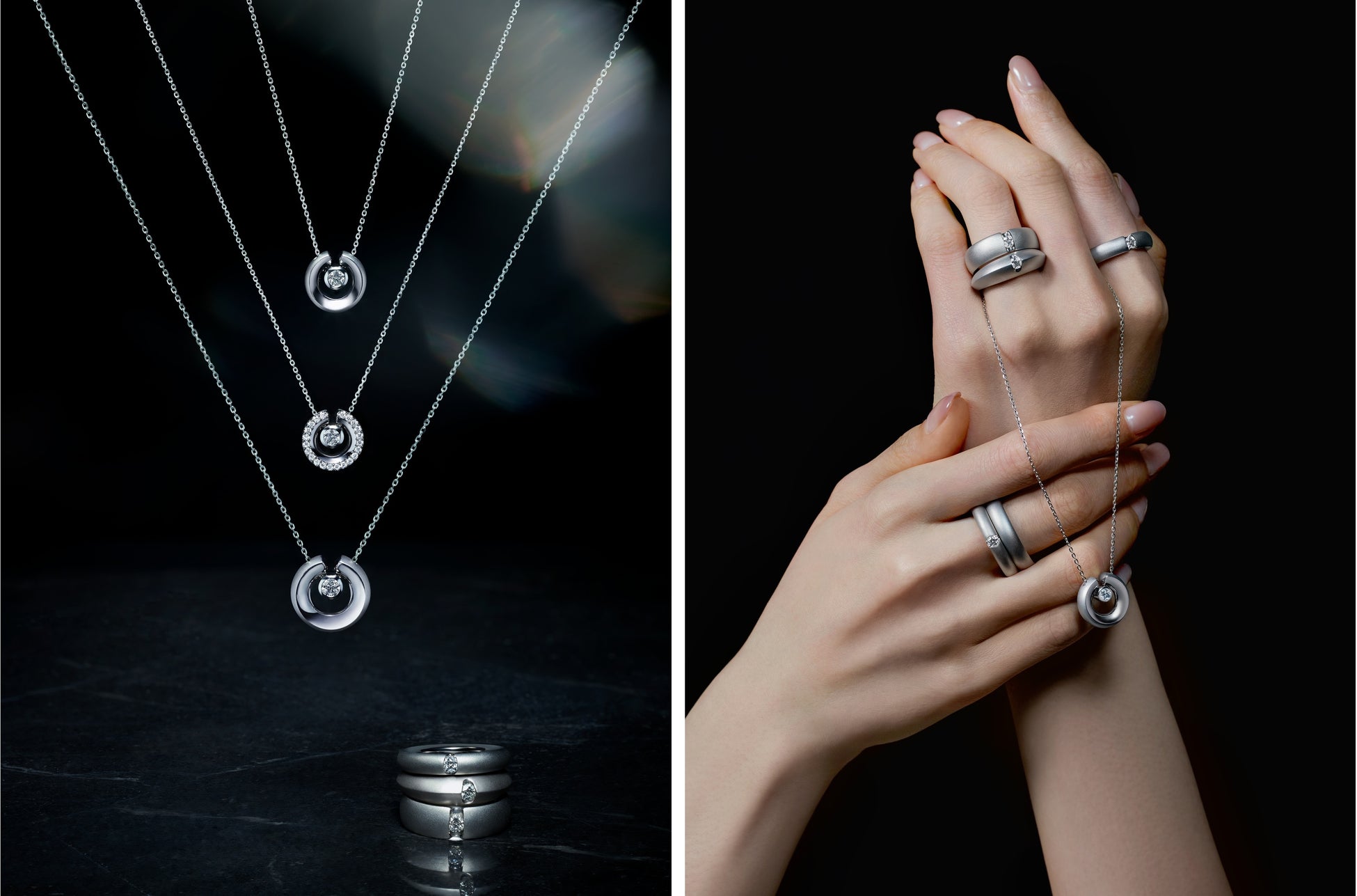 遮るもののない夜空の星は見るものを惹きつけ、ひときわ輝きを放ちます。唯一無二のダイヤモンドをいかに美しく印象的に表現するかを追求し、大胆に装飾性を削ぎ落とし、輝きを引き出す意匠を散りばめました。シンプルを極めながらも、印象的な量感・立体感のある美しいシルエットは、ボーダーレスな佇まいを表現。タイムレスな気品を宿したデザインが体の一部のようにしなやかにフィットし、どんなスタイルやオケージョンにも自然に馴染むニュートラルな存在感を放ちます。